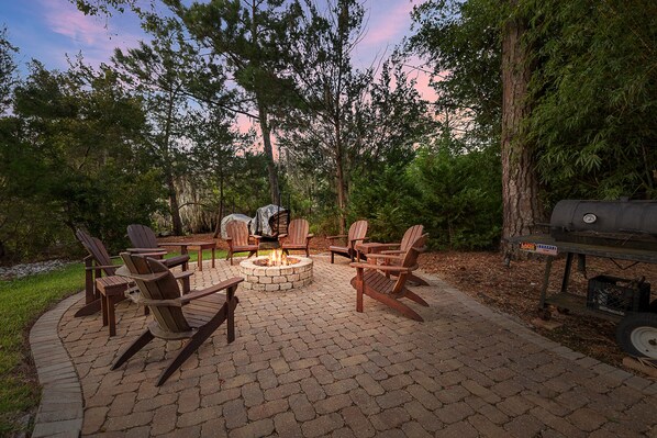 Welcome to Peachtree Oak Cottage, a charming island retreat located in the quiet neighborhood of St. Simons Heights. This inviting home offers the perfect mix of comfort, privacy, and convenience, with easy access to beaches, restaurants, and shopping on St. Simons Island. One of the standout features of this property is the spacious backyard and outdoor living area, complete with a wood burning firepit, making it an ideal place to relax and gather with family and friends.
