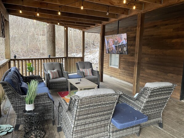 La camera da letto principale si trova al piano principale, due camere da letto private sono al terzo livello e una camera da letto privata si trova nel seminterrato al largo della sala giochi. Jacuzzi è in bagni padronali. La cucina di questa unità è piccola, ma il soggiorno e la sala da pranzo sono ampi. I mazzi sono coperti in quanto è progettato per godersi la vita all'aria aperta. C'è una buca per il fuoco fuori ed è una delle preferite dai grandi gruppi. TV satellitare / DVD. HVAC centrale. Per gli ospiti che non vogliono salire le scale: la camera da letto principale, la Jacuzzi, il soggiorno, la cucina e il portico con tavolo da picnic e grill sono tutti al piano principale!