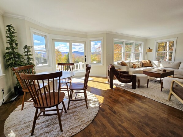 The lovely kitchen, dining room area has everything you need to enjoy a meal. The large and open living room is a lovely place to gather with amazing views just out of the window, a fireplace and a smart TV. We also have a beautiful deck and a huge yard to enjoy.