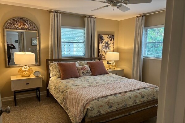 Godetevi sonno una buona notte di su materassi molto confortevoli, con biancheria di qualità. Una camera da letto ha un letto king size con materasso in memory foam fresco e seconda camera da letto ha un letto matrimoniale con materasso pillow top. La casa è stato aggiornato con tutti gli elettrodomestici nuovi, arredate con gusto e molto ben attrezzata per rendere il vostro 'casa lontano da casa'. Pet e persone amichevoli, la casa ha 2 aree di vita all'aperto: un patio laterale coperto appena fuori dalla cucina e l'ex capanna di orchidee nel cortile paesaggistico tropicale con un sacco di posti a sedere. Sentitevi liberi di utilizzare i 4 teli mare, 2 sedie a sdraio e 2 biciclette messe a disposizione per voi. Se sono richiesti più moto, si prega di chiedere. Il quartiere è ideale per passeggiate sul marciapiede o gite in bicicletta per vedere le chiome tropicali mature e le pittoresche case della zona. Vivere come un locale in questa metà del secolo affascinante casa con tutti i moderni comfort si trovano nel mezzo di Stuart.