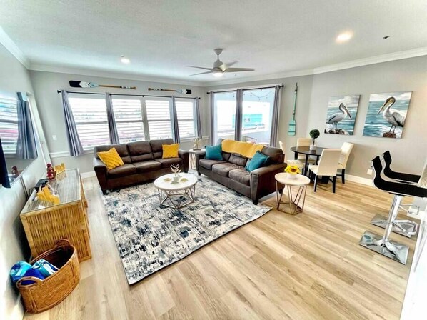 WELCOME TO OSCEOLA’S BALCONY, located in the heart of historic Downtown Stuart! Named for its best feature, this Brand New Fully Renovated Apartment with All New Furniture has 2 balconies directly overlooking Ocseola Street, perfect for people-watching, stargazing or just relaxing. Once you park your car, you’ll never have to get back in it! Just step out the door to find yourself surrounded by endless shopping and dining choices. Or if you prefer to see more of Stuart go ride the water taxi! The Osceola’s Balcony is on the second floor. It’s right next to Duffy’s building. This 2 bed 2 full bath 1350 sqft fully remodel suite gives plenty of space to spread out! You are surrounded by restaurants and a block away from the water. You can walk out the back towards the water! Our “OB” has new furniture throughout the suite. The “OB” has 2 great balconies! Our covered balcony gives protection from the sun as the main balcony gives you full view of downtown, which you will enjoy barbecuing on. Each bedroom as it’s on closest and dresser. The master has 2 closets. With 3 TVs (65” in main room) in the suite allows you to watch what you want too! Each tv has is own YouTube live subscription! The kitchen with brand new appliances is fully loaded with 2 coffee makers (one being Keurig) coffee is provided. We have a full pantry for plenty of goodies. We have brand new washer & Dryers in the suite as well. As for the bathrooms we a tub shower and full shower! The suite is full WiFi with at&t. We have made sure everting in the “OB” is done to fullest for you to enjoy your stay with us! Come see why the “OB” is your top choice for staying in Downtown Stuart! “OB7” has a designated parking spot right behind Duffy’s Restaurant all the way on the far right! There is street parking all around downtown which is 3 hour parking limit 8 am - 8pm. There are designated free parking a couple blocks away. There is a golf shuttle that can take you around town which is right out the front where they park at the circle. There is also a water taxi that you can take to see why Stuart is one of the top destinations for boating! I am available any time! Downtown Stuart As you walk around the beautiful walkways of downtown Stuart, views both natural and historic surround you. Originally built in the 1880s and 1890s, the main streets of downtown Stuart are home to buildings of true old Florida character and charm. Built upon the remains of Stuart’s first railroad stop, the history and the determination of Florida’s pioneers shows through in the personality and style of the buildings. Cast through old Florida oaks and banyan trees, a walk down the main streets of Flagler Avenue and Osceola Street has the vibe of the small, quaint, and coastal town originally founded upon pineapple plantations and railroads. We took the opportunity for pictures and admiration of the architecture and history preserved in the beautiful buildings. Extending behind all of downtown’s main area is a boardwalk over the St. Lucie River, where one can spot dolphins, fish, and oysters. After a meal of downtown’s delicacies and a day of shopping, the Riverwalk is the perfect place to wind down after a day of excitement. A wonderful spot for a stroll, we timed it perfectly to see the sunset over the water, a view that is unsurpassed in beauty. On Sundays from 1-4 in the afternoon, a local concert rocks the Riverwalk with a different band each week. Seating is free, and vendors provide quick snacks while meals at one of historic downtown’s restaurants is always only a step away. For a complete schedule of bands, see downtown’s website or like the event on Facebook for regular updates. Lit up at night, the Roosevelt Bridge stands over historic downtown and the river as the moon stands over the sea. Glowing in a warm yellow, the bridge is the backdrop to gorgeous sunsets and dazzling photos. It is a place to simply admire, where the natural beauty meets architecture on one of what is said to be one of Florida’s most beautiful bridges.