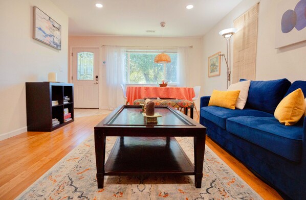 This newly renovated luxury 2b/2b apartment welcomes you to a safe and convenient community in the heart of Silicon Valley, with private, clean & spacious rooms, garden-like backyard, individual AC, 1000Mbps WiFi, gourmet kitchen, in-unit washer/dryer, smart TV with free access to Disney+ & Hulu & ESPN. 😃