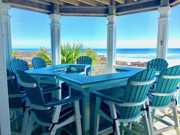 Quindi dirigiti verso un'altra terrazza con vista sull'oceano completa di tetto completamente coperto, sedie a dondolo e dondolo! Questo ponte si collega alla passerella privata e al gazebo che ti porta alla SPIAGGIA!