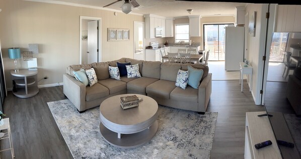 Location of the house is great with both and back having waterfront views. House in general is very clean. However, the dock at the back of the house has one floatation device broken, sinking one corner of the dock, making it unlevel and somewhat unsafe. We brought our boat and crab trap with us. However, we lost our crab trap because someone cut the rope of the trap and threw the floater on the nearby shoreline. This is the second time in Holden Beach that our crab trap was messed with by someone. It should be noted that we were careful in not placing our trap anywhere near the commercial crab traps.Last but not least, we were charged a very large amount of security deposit at the time of booking the trip, an amount that is equivalent to the total cost of rental for the stay. It took VRBO 14 days after we checked out before we got refunded. The owner told us VRBO was notified that there was no reported damage about 2 days after our checkout. We think not only was the amount of security deposit unnecessarily high, but to hold up customer 's deposit for 2 weeks after checkout was unacceptable. This alone is enough to make it uncomfortable for us to book with VRBO again.