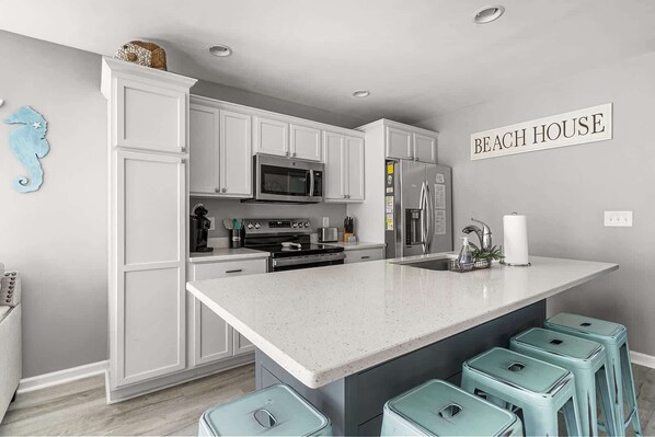 Just steps from the beach, this newly updated 3BR offers an open layout and ocean air galore. Two king bedrooms, a bunk room for kids, and a comfy sectional for movie nights make for an easy and relaxed Ocean Lakes getaway—and a golf cart (available for an additional fee) for easy trips to the splash zones, snack bars, lazy river, and other Ocean Lakes Resort activities.