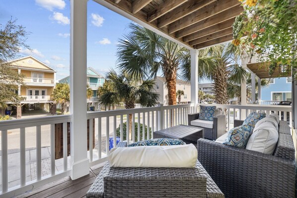 The main floor of Sun of A Beach SC boasts a comfortable living area with a Smart TV, cable, fast WIFI, a well-equipped kitchen to prepare those gourmet meals, and a dining area that seats 8 people at a large table and 4 people at the counter. There is access to the covered balcony, just off of the living area with outdoor seating. Down the hall from the kitchen is a bedroom with a king bed and an in-suite bathroom. Another unique feature of this home is a game room that is ready for your fun filled enjoyment! The room includes a foosball table, Marvel Pinball, NBA Jam, Mortal Kombat, and PacMan arcade games. The second floor includes 4 bedrooms, 4 bath, and the laundry room.