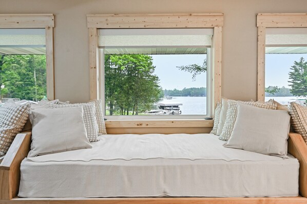 - Daybeds: 4 oversized twin daybeds in the main-level living area