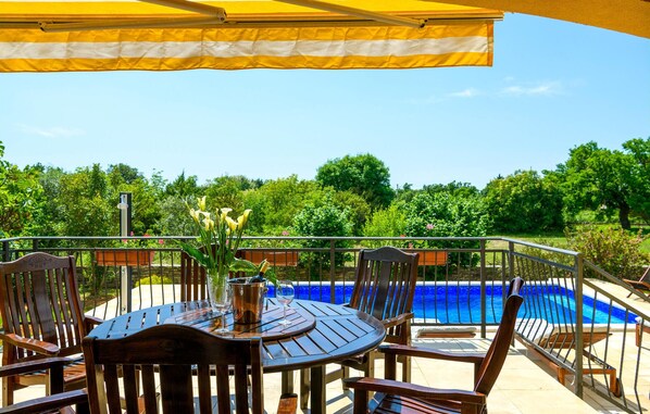 Trascorrerete molte ore meravigliose dentro e intorno alla piscina. Rilassatevi su uno dei lettini mentre i bambini sguazzano in piscina o giocano nell'ampio giardino. Il biliardo e il ping-pong intratterranno grandi e piccini per molto tempo. Qui non ci si annoia di certo. Sulla grande terrazza si possono consumare molti pasti in compagnia o godersi il tramonto con un bicchiere di vino. Naturalmente è a vostra disposizione anche un barbecue per accoglienti serate di grigliate.