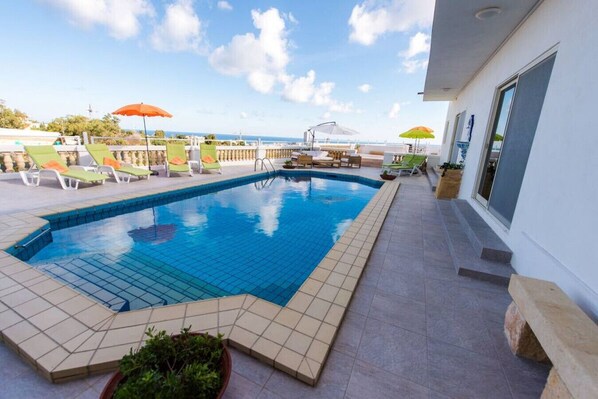 The villa boasts ample living space, with ample of space for relaxation and entertainment with WIFI. A large outdoor PRIVATE area is included for all our 11 guests, with a large pool, deckchairs and a BBQ area.