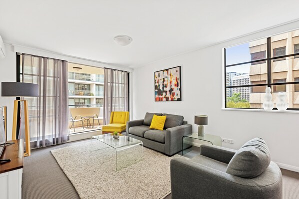If work is on your agenda, there is a laptop friendly workspace, then take some time to sit and relax with a drink and watch the world go by down below in North Sydney from the balcony. A great reward!