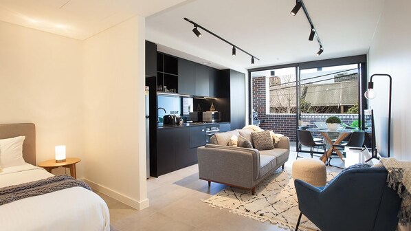 Questo spazioso monolocale offre un santuario tranquillo vicino ad alcune delle migliori attrazioni di Sydney. Un'audace cucina nera è dotata di tutto ciò di cui il cuoco ha bisogno, con una suite lounge elegantemente arredata che invita a sentirsi a proprio agio. Alla fine della giornata, rilassati sul balcone con un bicchiere di vino bianco croccante in mano mentre pianifichi le avventure del giorno successivo.