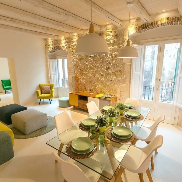 Terrazze Panoramiche: Due splendide terrazze private completano l’appartamento, regalando viste mozzafiato sulla città e sul mare cristallino di Ortigia. Che sia per una colazione al sole o un aperitivo al tramonto, questi spazi ti offriranno momenti indimenticabili.