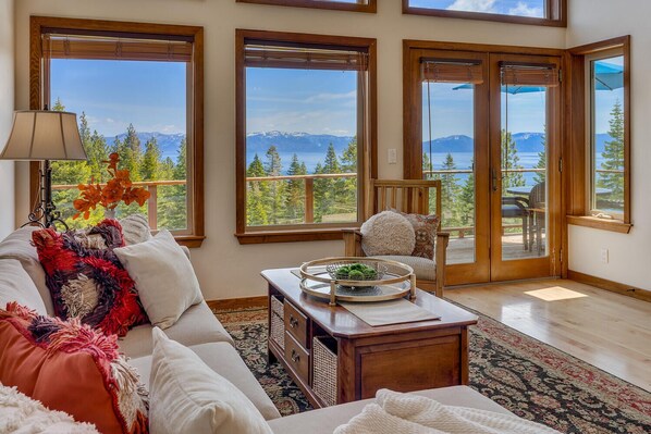 This beautiful Tahoe home is the perfect mountain cabin to enjoy an active vacation or just relax among the trees soaking in stunning views of Lake Tahoe. Furnishings are finely appointed throughout the home. The gourmet kitchen with granite countertops and top-of-the-line appliances are a chef's delight. The cathedral ceilings and tall windows allow for lots of sunshine all day long. Enjoy a nice hot tub on one of the two decks that face the lake. Just two miles south of Tahoe City, Sierra Vista is on a quiet cul-de-sac and is situated on the hill above the west shores of Lake Tahoe and Sunnyside Resort. Enjoy the gorgeous lake views or go down to the water's edge at Tahoe Park Beach Club where you can picnic, barbecue, play volleyball, basketball, horseshoes or watch the kids on the playground all summer long. Palisades Tahoe and Homewood Mountain Resort are a short drive away, and Paige Meadows is right out the back door for the cross-country skier and snowshoe enthusiast. In the summer, you can access some of the best hiking and mountain biking trails in the Tahoe area. For those adventurous souls, you can bike cross-country from Paige Meadows all the way to Alpine Meadows, or even Olympic Valley, returning on the bike path along the Truckee River and the west shore of Lake Tahoe.
