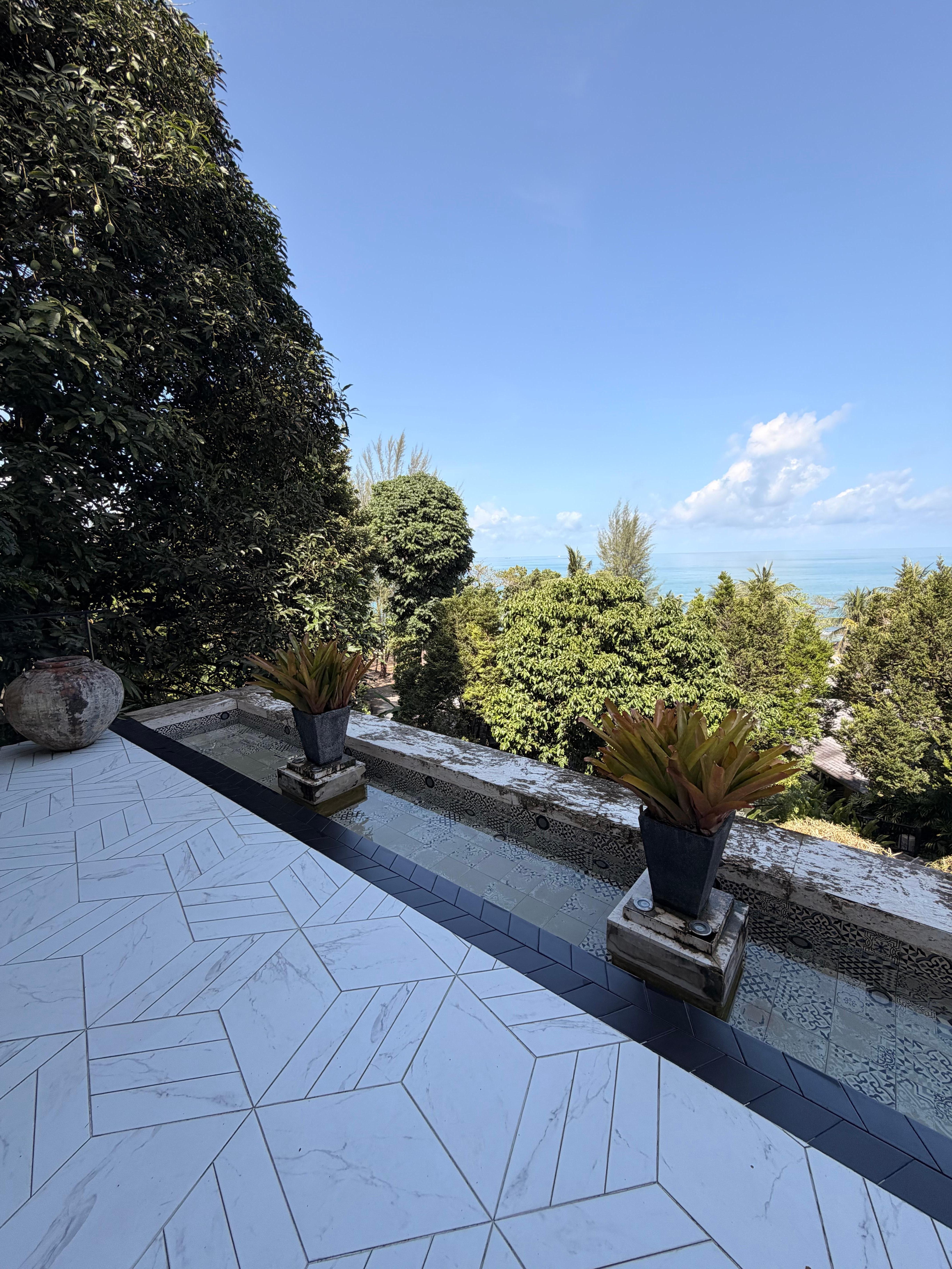 Vi boede i en poolvilla. Super lækkert privatområde. Villaen er ikke lydtæt, så alt høres tydeligt. I vores tilfælde var det havet og regnen.