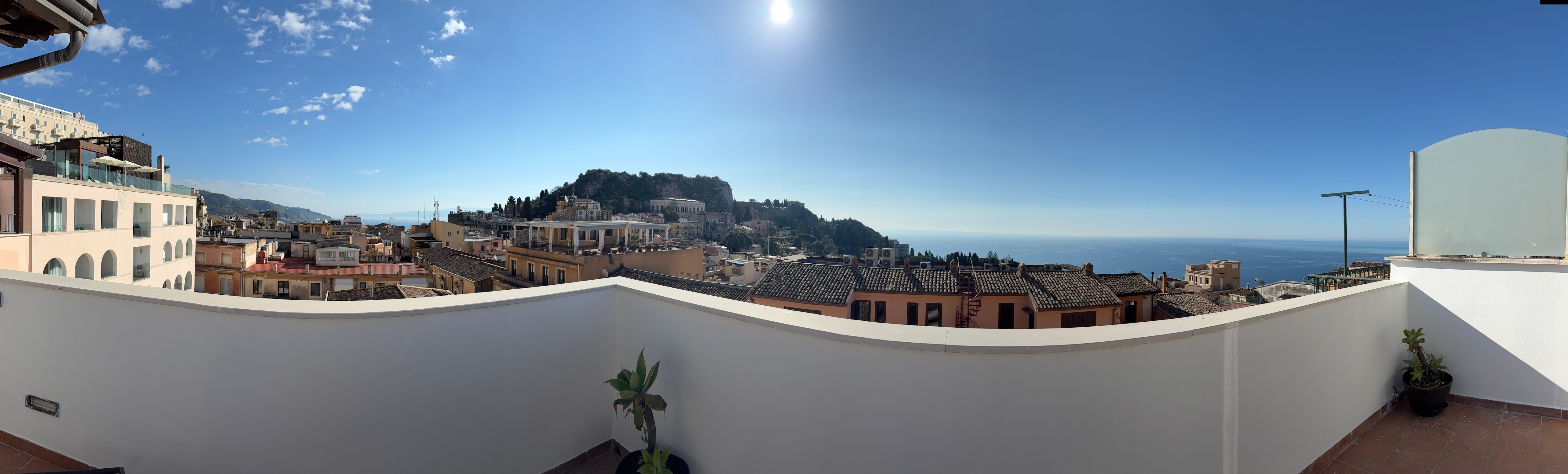 Easy access with parking at Lumbi and then shuttle service. Very centrally located, a short walk from the gates into Taormina. Nice amenities and beautiful balcony with a stunning view. Staff was very helpful and attentitve. Would definitely recommend.