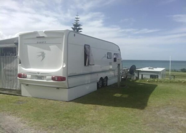 Caravan and awning with great birw just metres from the beach