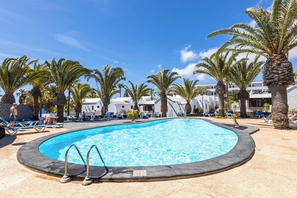 Beautiful apartment with a large terrace with sea views and communal swimming pool, at the foot of Playa Bastián in Costa Teguise, where you can sunbathe, have lunch and enjoy a summer atmosphere all year round. With an exquisite decoration, two spacious bedrooms and capacity for 4 people, it is ideal for families, couples and business trips. With all the necessary services around to spend a unique holiday in Lanzarote.
