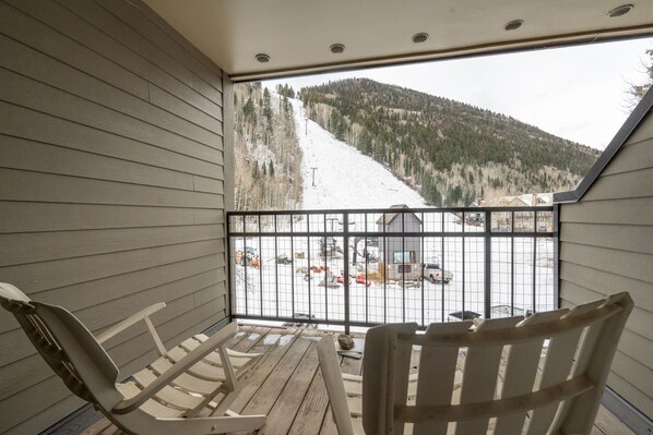 This spacious condo right at the base of lift 7 is perfect for a ski in-ski out vacation for 2. The condo was stocked with necessities and felt like home.