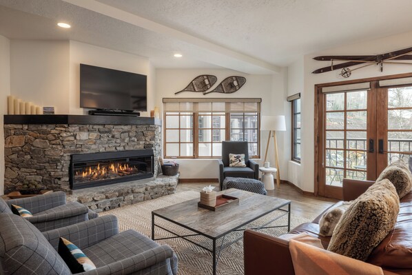 - Unbeatable location near lifts, gondola, dining, shopping, and outdoor adventures - Spacious 4-bedroom, 3-bath layout—comfortably sleeps up to 10 guests - Private balcony with stunning mountain views - Perfect for ski vacations, summer escapes, and group getaways - Comfort Meets Elevated Mountain Style - Designed for relaxation after a day of adventure, this thoughtfully curated condo features: - Two king suites, each with a private en-suite bathroom - A queen bedroom and a bunk room with two twin bunk beds—ideal for families or larger groups - A third full bathroom with a rejuvenating steam shower - Unwind in the inviting living room with a cozy gas fireplace, or gather together in the open-concept space designed for connection and comfort.