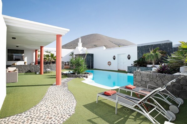 Questa casa vacanza offre uno spazio esterno privato con piscina, giardino, terrazza aperta, terrazza coperta, barbecue e doccia esterna.