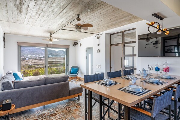 Con una buona posizione in riva all'oceano, questa villa si trova a 1,9 km da Exomvourgo e a 5 km da luoghi d'interesse come Monastero delle Orsoline e Santo Monastero dell’Assunzione della Vergine Maria. Museum Costas Tsoclis si trova a 4,1 km di distanza.