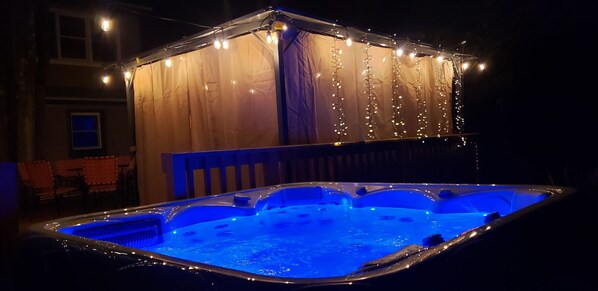 #14 ]] Hot tub: * You are welcome to use the hot tub at your OWN RISK. * SHOWER before use. * Never use street clothes in the hot tub, SWIMMING SUITS are required. * We strive to have the tub on and running throughout the year, however, due to potential issues/maintenance of the tub, we cannot guarantee that the tub will be operable during your stay.
