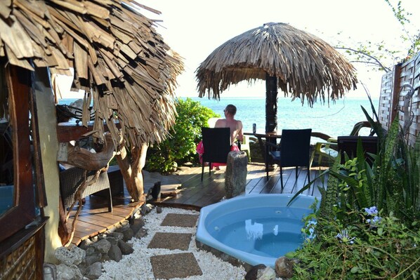 Meraviglia Fancy e piccoli gioielli verdi prima dell'ora, questa casa ha tutto un grande nonostante le sue piccole dimensioni. Immerso nel giardino di fronte al mare e con una jacuzzi privata, si fonde completamente con la natura che lo circonda. Qui si vive in riva al mare, ci addormentiamo vedere il mare, ci alziamo alla vista dei pescatori in canoa, mangiare di fronte al mare, bere un bicchiere di fronte al mare, il tutto con il canto onde sulla scogliera di roccia durante tutto il giorno e la notte. Questa casa in realtà non è come gli altri, interamente in legno e tetto verde, è stata costruita con un semplice motosega qui niente di tutto industriale è fatto a mano o con una motosega dandogli il timbro così speciale che rende questa casa finito 4 ° concorso delle più belle case private nel 2014. Lei è così speciale, che abbiamo chiamato: la tariffa (casa in tahitiano) Tarzan, ma all 'jane' sono i benvenuti pure. Si può sempre andare a pescare il pesce nella laguna del giorno, se si vuole, (se non si è preso non preoccupatevi, il supermercato vende contrario pesce contro 1 biglietto moneta o il mio vicino di casa è un pescatore e si può anche acquistare il tonno con lui al suo ritorno) .La casa è su una proprietà di 2000 mq in comune con altre 3 case .Il terreno è perfettamente chiuso e abbiamo 3 cani che forniscono babysitting (un buon bastardo e 2 bassotti) in modo da avere la gioia di poter dormire ogni aperto se ne hai voglia, immaginate la vista notturna della laguna sotto la luna piena, è sorprendente. Il supermercato di fronte troverete tutto il necessario (pratica ultra). Per quanto mi riguarda io lavoro a casa per una società di opere marine (www. Tiaiamoana. Com) così ho acquisito nel corso degli anni una certa conoscenza delle isole sarei felice di condividere con voi, se avete bisogno di aiutare nel vostro viaggio di pianificazione.