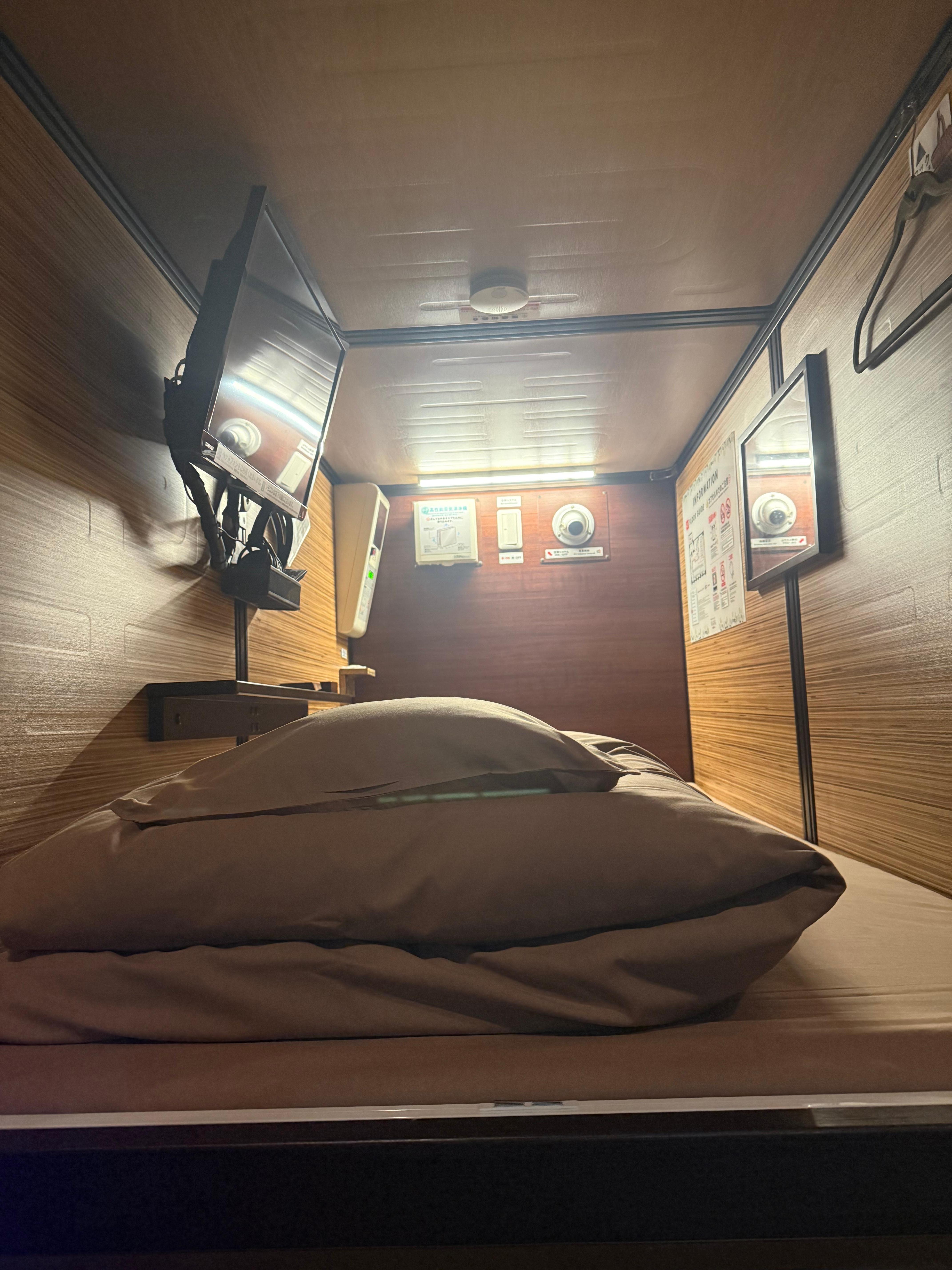Capsule is prima. Wel erg gehorig, meer dan andere capsule hotels. Bad faciliteiten zeer matig. Niet schoon. Personeel opzich prima.