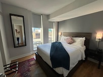Avremmo potuto essere reduci da un volo intercontinentale di 10 ore, ma l'unica cosa richiesta subito al check in è stata "passport and credit card" nel pieno efficienzialismo statunitense (a due passi). Nessuna traccia di upgrade o servizio vip access. La stanza è ampia al 12esmo piano e si affaccia su un cortile interno e su altri grattacieli. Molto carina la zona cucina e sala relax. È presente acqua di cortesia e una macchinetta del caffè. La stanza è dotata persino di asciugatrice. Non c'è nulla che non vada, solo da rivedere il personale e i modi bruschi tipicamente statunitensi e molto poco canadesi. Per una notte e non di più questo albergo va benissimo. Oltre non riuscirei.