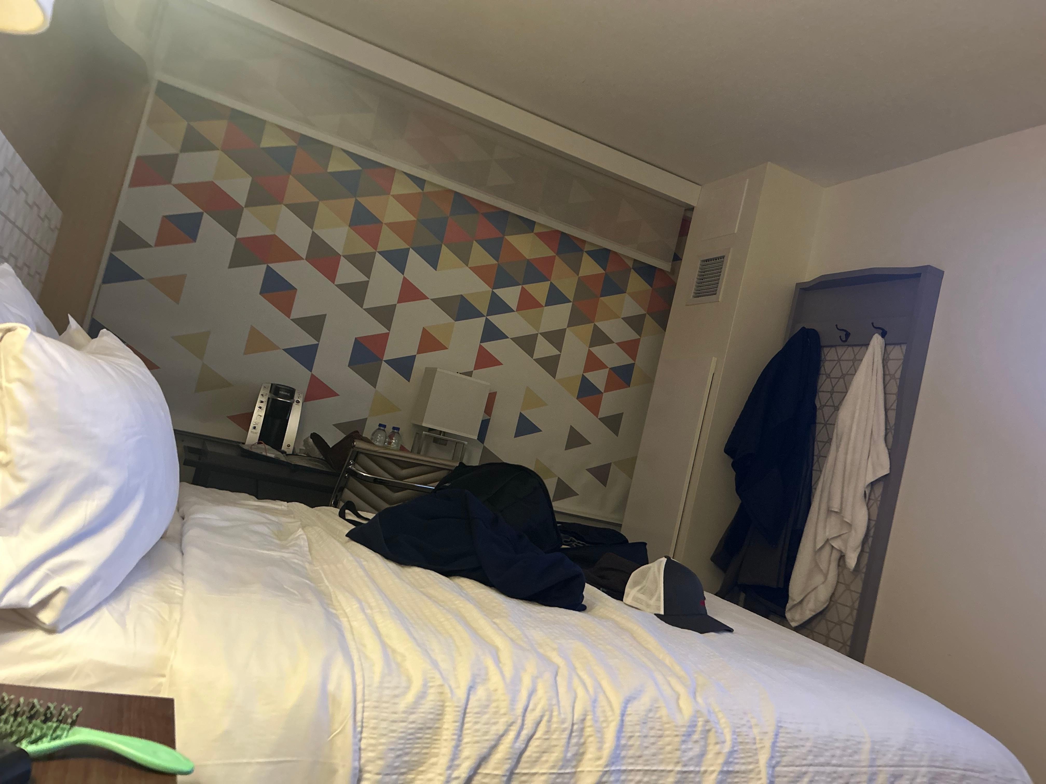 Room was great, the king bed was comfortable to sleep in and the freebies in the washroom was super nice. Unfortunately we kept having troubles with going out the parking lot and we had to scan the parking ticket 10 mins for the bar to open. Someone pulled the fire alarm late at night which disturbed our sleep as well.