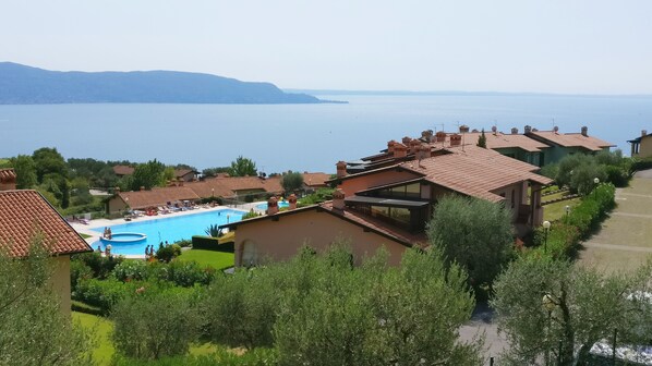 Spazi e servizi comuni: Una piscina per bambini + una piscina per adulti con spazi per prendere il sole (sdraio comprese nell'appartamento), area bambini, campo da bocce, ping pong, campo da calcio.