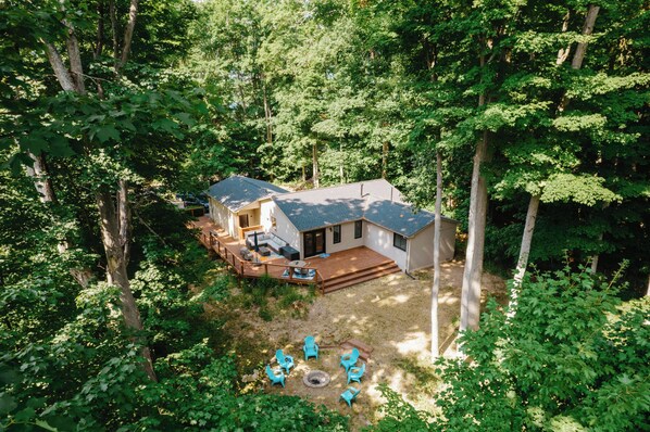 We enjoyed this home a lot. Very clean, nice layout and the home was among the best we have experienced as far as having everything you could possibly need for cooking and entertainment purposes. Only wish we had more time there to enjoy things like the nice outdoor space and firepit. Neighborhood was quiet and peaceful nature setting. Short drive to Traverse City shopping and tourist areas.