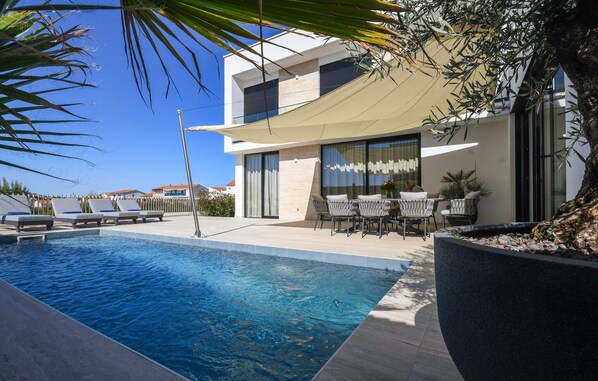 Questa villa moderna vi delizierà con il suo design elegante e minimalista. I caldi elementi in legno, i tenui colori naturali e gli arredi selezionati e confortevoli creano un ambiente davvero piacevole. Potrete godervi accoglienti serate culinarie nella moderna cucina e cene eleganti al grande tavolo da pranzo. Mettetevi comodi sul divano, guardate un film in streaming sulla grande Smart TV o concludete la serata con un bicchiere di vino.