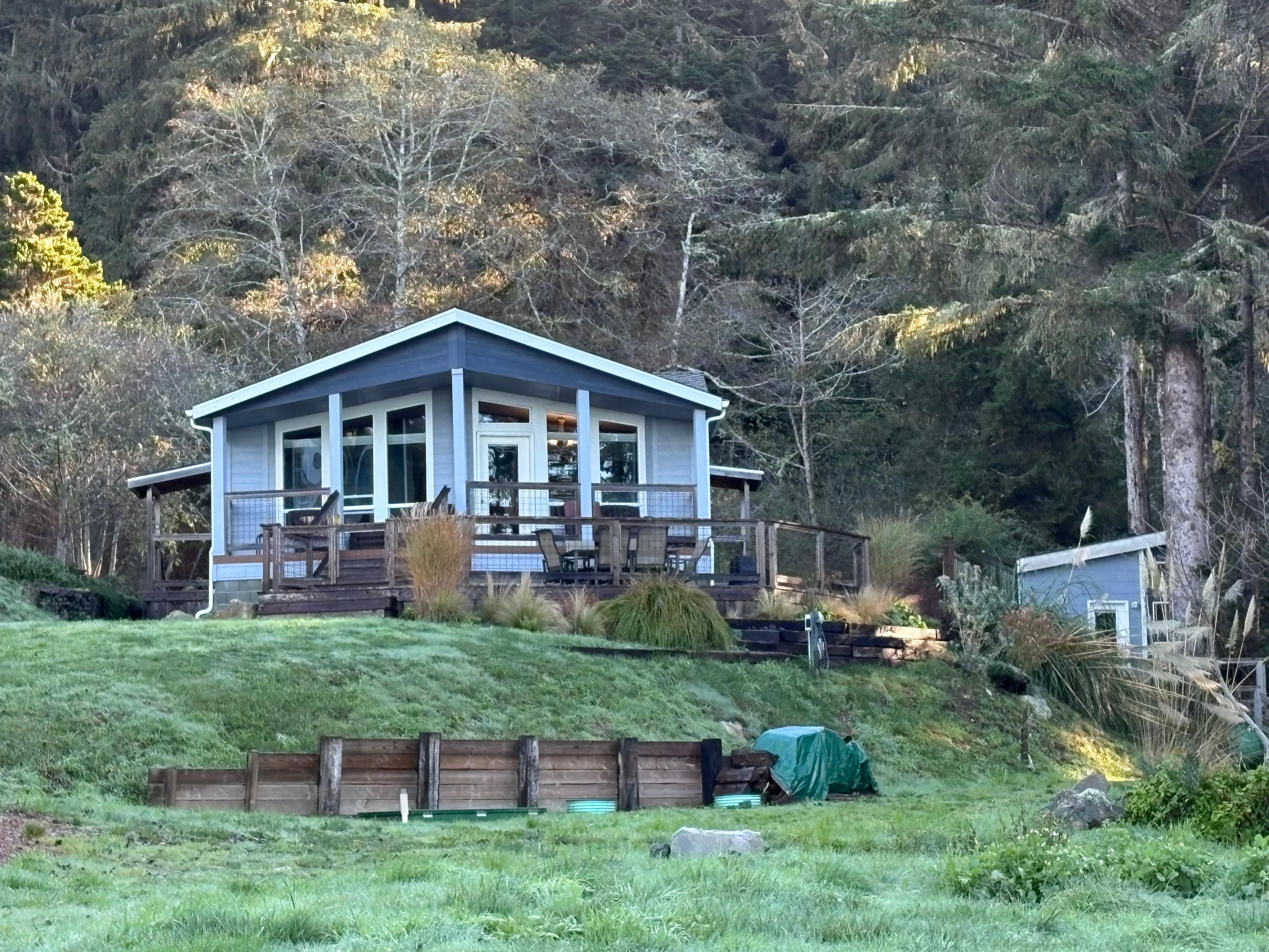 Nestled on the rugged cliffs of Northern California's breathtaking coastline, Spruce Creek Cottage is a luxurious retreat that seamlessly blends rustic charm with modern elegance. Located just outside the charming town of Trinidad, this intimate one-bedroom cottage offers peek-a-boo ocean views and an abundance of natural light that fills the space, thanks to soaring vaulted ceilings. It's the perfect sanctuary for relaxation and rejuvenation. From the fully stocked kitchen to the cozy living room, you'll enjoy the bliss of a serene, forested setting perched above wide-open bluffs—ideal for taking in spectacular ocean views and unforgettable sunsets.
