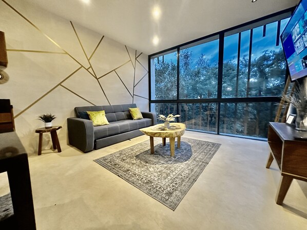 The space Step into a stylish and modern space, with a touch of Tulum's charm. The decor is fresh and contemporary, offering a comfortable and chic atmosphere. It's a fusion of modern design and a taste of Tulum's unique allure. Your stay here guarantees a stylish and modern experience that mirrors the town's fashionable ambiance.