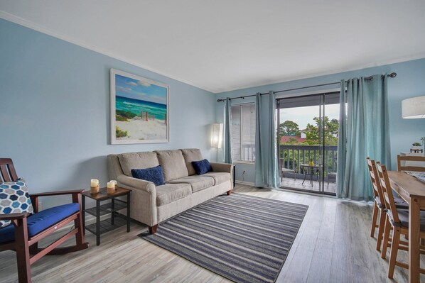 A beach view would have been nice, but beach access was close to the building and swimming pool. Parking was convenient. Local shops and restaurants were in walking distance. The rental was neat and clean.