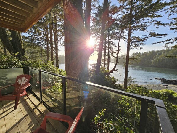 We were spoiled with perfect weather for our recent stay. We also got to witness the annual herring spawn right from the balcony as it took place right in the inlet at Terrace Beach this year! There were sea lions and we even saw a fair amount of whale activity just outside the inlet, while enjoying some refreshments on the upper balcony. The place was great for a family. Lots of space and you don’t feel like you’re disturbing anyone with young kids. We’ll be back again one day!