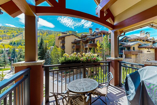The private balcony features beautiful mountain and village views and is a great spot to savor your first cup of coffee in the morning. The living area makes for great entertaining, and you'll love watching your favorite movies on the TV with plenty of late-night snacks and good wine. Did someone say ski-in/ski-out access? You'll have Born Free Express Lift 8 and Eagle Bahn Gondola 19 right across from the suite. Plus, there is a shared fitness center, a heated pool, and hot tubs to take advantage of as well!