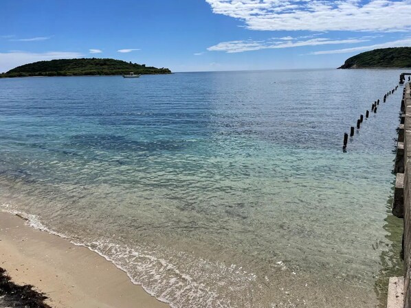 Beach chairs, towels, sand toys and a cart to carry them will be there for you to use. An outdoor shower will help take the sand off before entering the house.