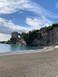 Su una spiaggia privata di sabbia scura - Stazione Marittima di Salerno nelle vicinanze