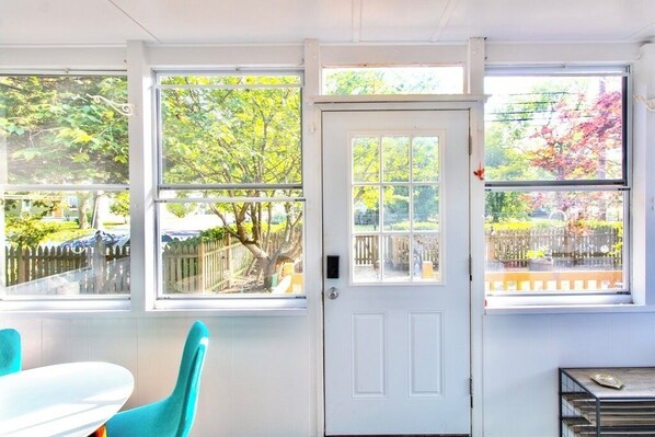 Recently upgraded and beautifully furnished throughout, this spacious and private two-bedroom cottage features an open floor plan with a full kitchen, dining area, dedicated workspace, and a living room with a Smart TV.