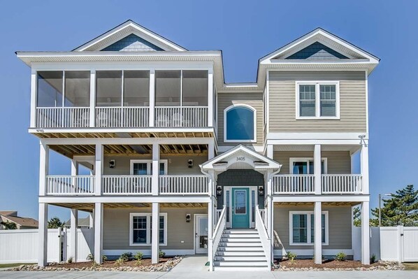Wow! Alla fine è una casa favolosa per la tua famiglia per godersi la loro vacanza al mare a Sandbridge Beach. Bellezza semi-oceanfront, amerai le camere spaziose, gli appuntamenti di lusso e l'arredamento di buon gusto che il costruttore di queste case è diventato famoso. Sette camere matrimoniali danno privacy a tutti gli adulti. L'enorme cucina ha granito, un sacco di spazio di archiviazione, frigorifero di grandi dimensioni, 2 forni e una stufa a gas per gli chef. L'ascensore consente di spostarsi da un piano all'altro facilmente per qualsiasi membro della famiglia. Favoloso livello superiore offre una vista sull'oceano, ampio spazio aperto concetto grande, cucina e sala da pranzo. Migliaia di metri quadrati di terrazze fanno spazio a tutti per godersi la brezza dell'oceano. A bordo piscina il bar cabana con frigo, TV LCD e lavandino ti dà un posto per stare al passo con il gioco mentre i bambini giocano in piscina. Area recintata del cortile offre la piscina e una zona erbosa è l'ideale per i bambini a correre e giocare. Al piano terra ha una sala giochi con angolo cottura con 4 posti a sedere, lavello, microonde e mini frigo. I giochi da tavolo o le carte sul tavolo da gioco ti faranno divertire.
