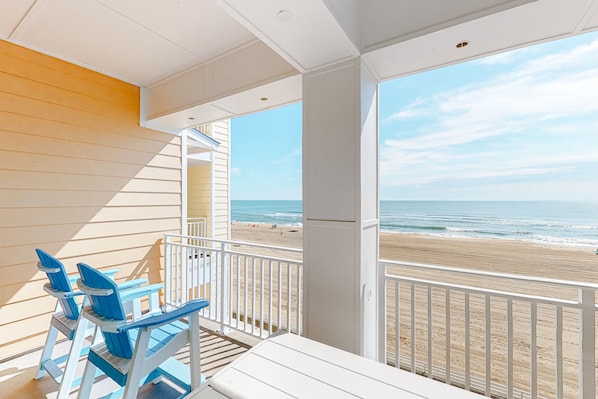 Beachfront condo with balcony, W/D, 3 outdoor pools, gym & AC