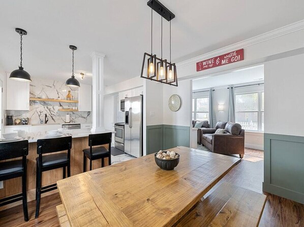 We bring to you the farmhouse at the beach with a modern twist. This 3-bedroom, 2.5-bathroom home was renovated in 2022. It has 3 parking spaces, a full kitchen with all cooking and eating utensils supplied, and a breakfast bar that sits 3, 54` TV including HULU plus, Netflix, and fast WIFI. The property also features an outdoor grill.