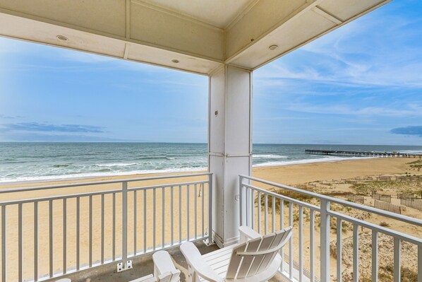 the condo being oceanfront is great. however..the place is infested with Furrow Spiders. We had a wonderful balcony that we could not use because there were spiders everywhere..we could not open the windows to get the ocean breezes because all the windows had the spiders living in them. went to use the pools and the spiders were there also.even on the railings to hold on to while entering the pool. The inside of the condo was clean and had everything we could need..however..not being able to use the balcony was a big reason we will not be returning.