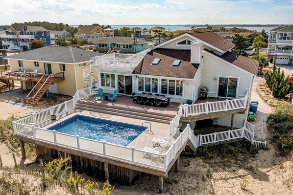 Time for a timeless classic at “Shore Elegance”. The views are amazing from the great room, kitchen and sunroom, and the pool deck too! This is where you will want to be: Either on the beach or by the pool with a great ocean view. This cute oceanfront beach cottage has its own charm in an eclectic mix of a traditional cottage and updated items such as that great kitchen! Granite countertops, lots of storage, a pantry, island plus a bar with seating make meal prep a social occasion.