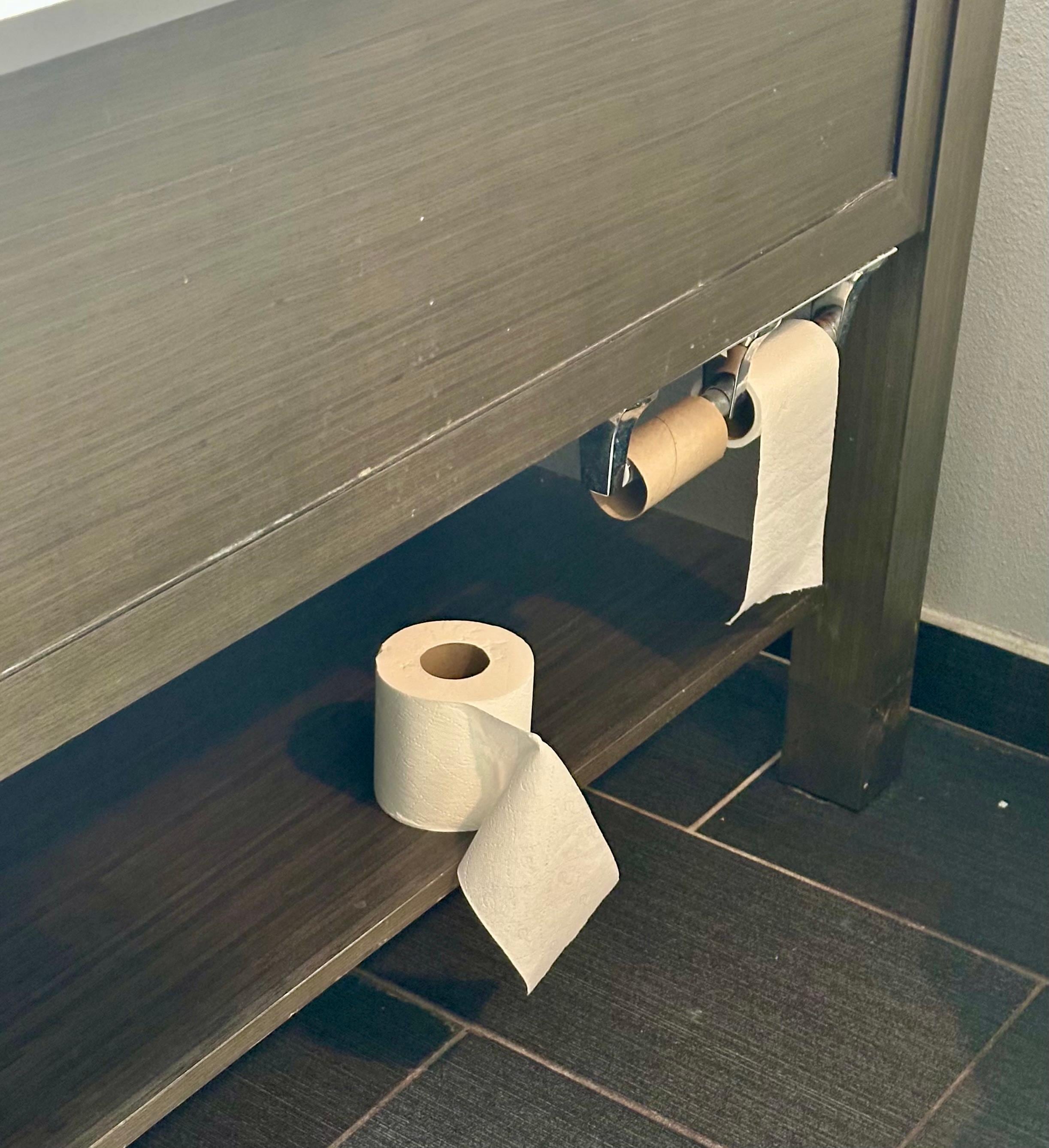 We are uncertain whether our room was cleaned since the previous occupants left. We had an accessible room, so I did not request to change rooms. There was makeup on the pillowcase and blood smears on the top of the duvet cover. Bathroom sink looked used and not wiped. Toilet paper had one empty roll, one almost empty roll, and one half roll. Fridge had broken shelves, and a discolored ice jam with a bread tie frozen in it. We asked for and were provided clean bedding by the front desk, but they had us bring the soiled linens to the front desk which was really gross. They did not offer to remove the bedding, remake the bed, or help in any way. There was a small apology, but the overall response was underwhelming. The room had a funky odor that we thought went away with turning the fan on, but we realized our noses had just adjusted.