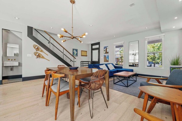 Each bedroom is thoughtfully designed with 3 queen beds with memory foam mattresses and premium linens that promise a rejuvenating night's sleep. In the bathrooms, spa-like features await, offering the perfect space to unwind after a day exploring the city.