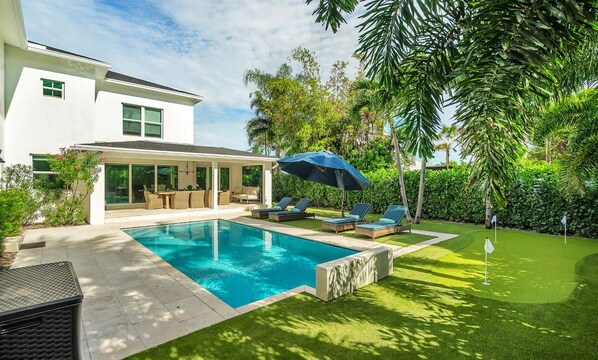 Kick up the fun with stellar pool, putt putt, outdoor dining, outdoor loungers, indoor games and more! Relax in the cool A/C with your favorite show on the Smart TV’s throughout, sleep in luxury and dine in style. You won't miss home! We promise!