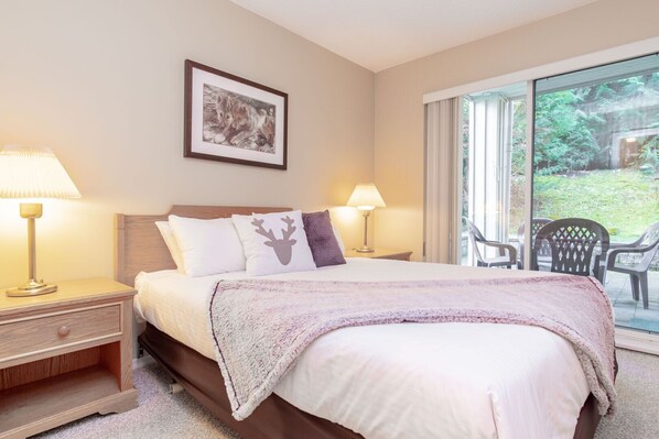 Questa confortevole camera da letto offre una vista tranquilla sulla foresta dal balcone, dalla zona giorno e dalla camera da letto. Il condominio dispone di una cucina completamente attrezzata, 2 bagni (1 con vasca da bagno a immersione totale), camino a gas, TV, videoregistratore, stereo, arredamento confortevole soggiorno e sala da pranzo posti a sedere per 6.